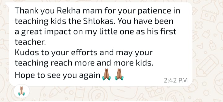 Rooted in the timeless values of sanātana dharma, Vidya blends ancient Indian samskaara with modern child psychology. She’s a certified mindfulness and meditation coach who has: